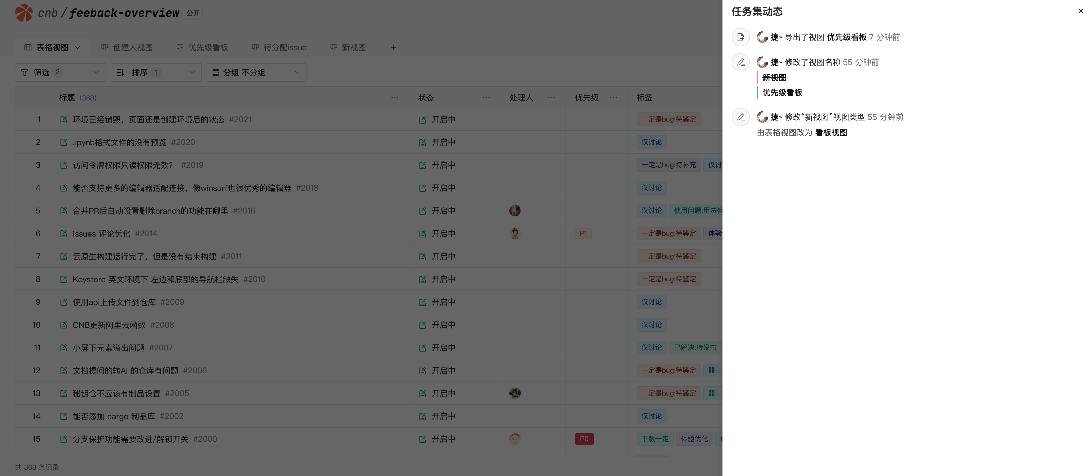 任务集是 CNB 项目协同工具,提供可视化任务看板,帮助团队跨组织/跨仓库集中化管理 Issue/PR。